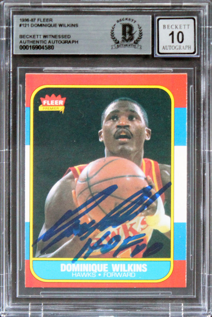 Hawks Dominique Wilkins "HOF" Signed 1986 Fleer #121 RC Card Auto 10! BAS Slab 1