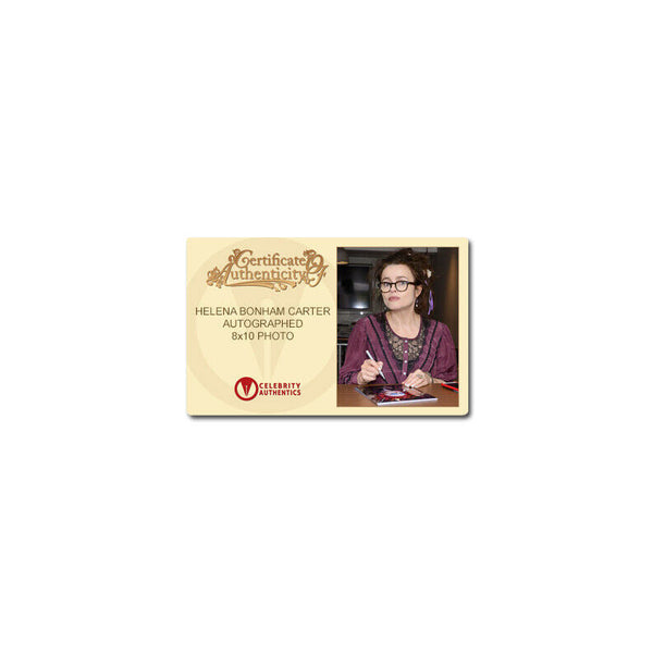 This 8x10 photo of The Red Queen from Alice in Wonderland has been personally hand-signed by Helena Bonham Carter during her signing with Celebrity Authentics. Photo ships affixed with Celebrity Authentics serial-numbered and tamper evident Authentication Hologram and includes Celebrity Authentics Certificate of Authenticity featuring picture of Helena signing photo. Please note: with multiples signed by the actor, a sample photo is used from stock to represent what you will receive. Exact autograph size and placement may vary.