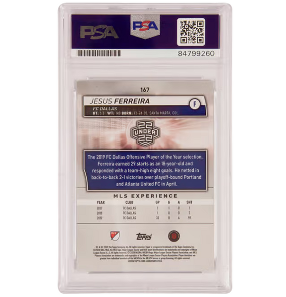 This is a Jesus Ferreira Signed 2021 Topps MLS FC Dallas #167 - PSA Authentic. THE ITEM IN THE PICTURE IS A STOCK IMAGE. YOU WILL RECEIVE AN IDENTICAL ITEM OF EQUAL QUALITY. ALL JERSEYS ARE SIZE LARGE. Every item of signed memorabilia we sell is official and of the highest quality. We pride ourselves on providing sports fans with the most exclusive signed memorabilia on the market. We are an industry leading signed memorabilia company who can guarantee 100% authenticity on every signature we sell. The item you receive will be identical to the one you are seeing in the stock pictures. This includes the item, the authentication company, signature color and signature placement. We take pride in ensuring the authenticity of all our items. With unwavering commitment, we guarantee that every signature is 100% authentic. Every item of signed memorabilia comes with a scannable barcode which takes you to the certificate of authenticity on the company's website. These industry leading authentication companies include Beckett Authentication Services, James Spencer Authentication Services and Professional Sports Authentication Services.