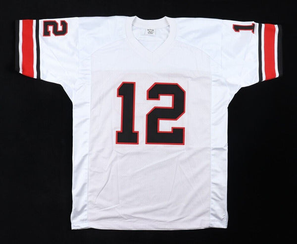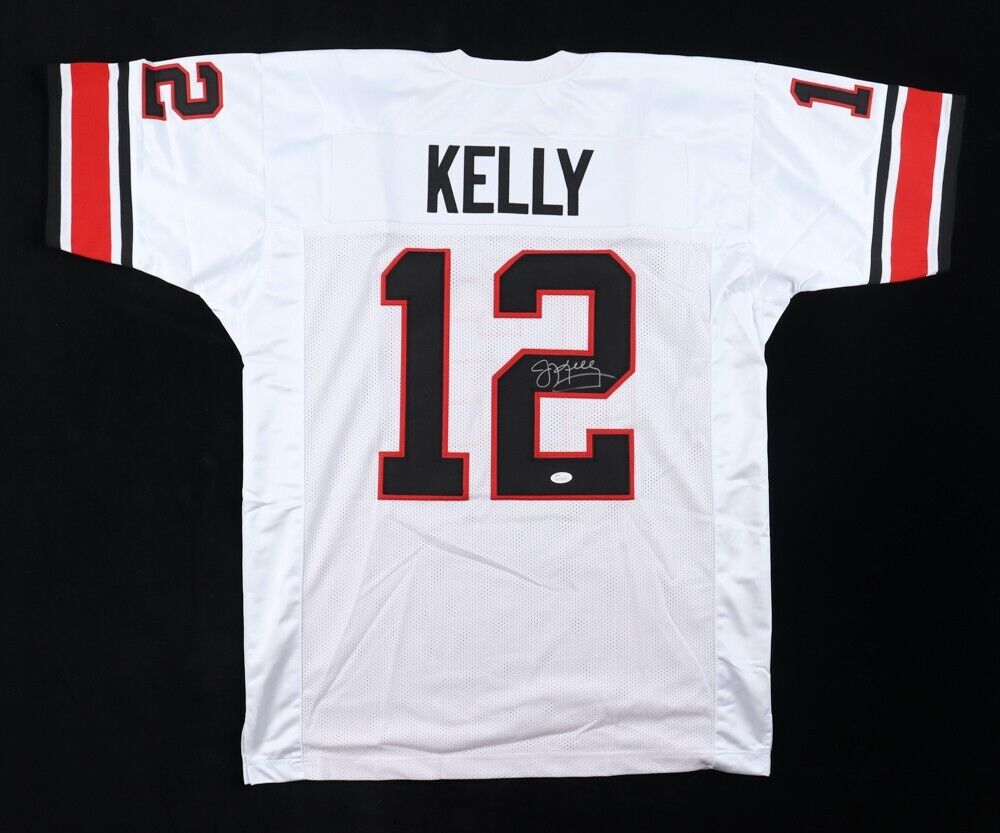 Custom on-field style jersey. Everything sewn on, size XL. Hand signed in silver paint pen by Jim Kelly (Buffalo Bills, HOF). The lot / autograph(s) includes an official James Spence Authentication (JSA) hologram and matching COA for authenticity purposes. The signing of this item was witnessed by JSA.Authentication: JSA COA