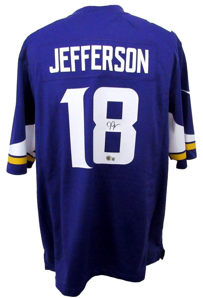 Justin Jefferson Signed/Autographed Purple Nike Replica NFL Game Football Jersey Size XL Minnesota Vikings. This jersey is authenticated by BAS/Beckett Witness and includes their Tamper-proof Hologram Sticker.