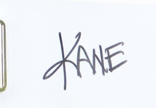 WWE plastic replica championship belt. Measures approximately 39" in length. Hand-signed by Kane (HOF).The lot / autograph(s) includes an official James Spence Authentication (JSA) hologram and matching COA for authenticity purposes. The signing of this item was witnessed by JSA.Authentication: JSA COA