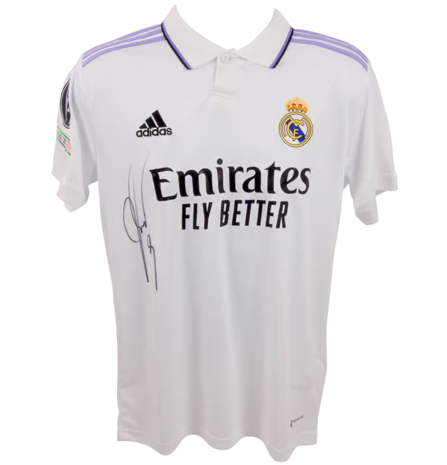 This is a Karim Benzema Front Signed Real Madrid FC Home Soccer Jersey with Beckett COA. THE ITEM IN THE PICTURE IS A STOCK IMAGE. YOU WILL RECEIVE AN IDENTICAL ITEM OF EQUAL QUALITY. ALL JERSEYS ARE SIZE LARGE. Every item of signed memorabilia we sell is official and of the highest quality. We pride ourselves on providing sports fans with the most exclusive signed memorabilia on the market. We are an industry leading signed memorabilia company who can guarantee 100% authenticity on every signature we sell. The item you receive will be identical to the one you are seeing in the stock pictures. This includes the item, the authentication company, signature color and signature placement. We take pride in ensuring the authenticity of all our items. With unwavering commitment, we guarantee that every signature is 100% authentic. Every item of signed memorabilia comes with a scannable barcode which takes you to the certificate of authenticity on the company's website. These industry leading authentication companies include Beckett Authentication Services, James Spencer Authentication Services and Professional Sports Authentication Services.