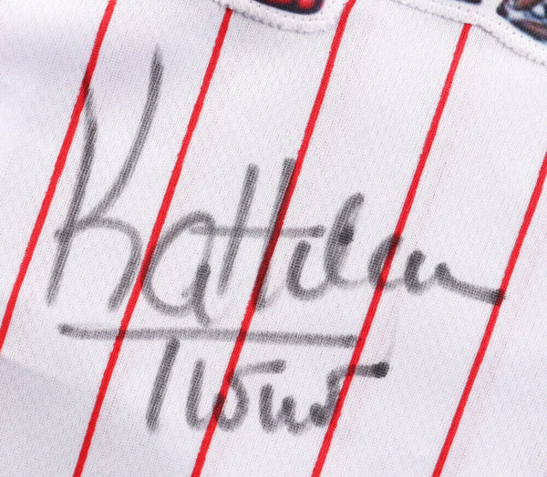 "Who Framed Roger Rabbit" Baseball Jersey. Everything sewn on, size XL. The jersey is hand-signed by Kathleen Turner.The lot / autograph(s) includes an official James Spence Authentication (JSA) hologram and matching COA for authenticity purposes.Authentication: JSA COA
