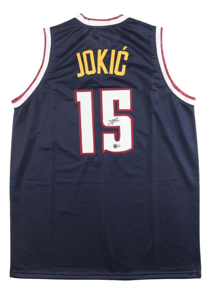 Featured is a Nikola Jokic signed custom basketball jersey. This jersey has been hand signed by Jokic and comes with the Beckett hologram and certificate of authenticity. This jersey features professionally sewn letters and numbers and is size XL. This jersey has no team tags or emblems and is intended as a sports collectible. This jersey would make a great addition to any sports memorabilia collection! SPECIFICATIONS Autographed By: Nikola Jokic Team: Denver Nuggets Sport: Basketball Authentication: Beckett Grading Services