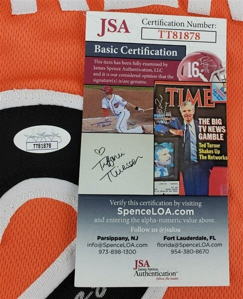 This autographed jersey has been personally hand-signed by Nolan Arenado of the St. Louis Cardinals.This autograph is certified by James Spence Authentication (JSA). It comes with the numbered hologram and matching Certificate of Authenticity.Custom on-field style jerseys are a more affordable option for autograph seekers. These jerseys do not have any brand name or tags and are made in the Philippines. They feature stitched on names and numbers and are made to look very similar to the on-field jerseys that the players wear. These custom jerseys are very commonly used in the memorabilia industry.