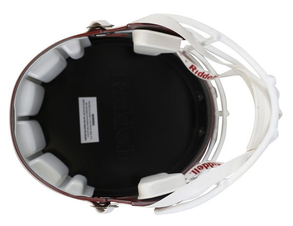 This Autographed Riddell Full Size Speed Rep Helmet with the inscription of "2008 Heisman" has been Personally Signed by Sam Bradford of the Oklahoma Sooners. This item is 100% Authentic to include a hologram by Beckett Authentication Services. This item will come with an affixed Beckett Authentication Services (BAS) authentication sticker, which includes a scannable QR code to verify authenticity. Please note that Beckett no longer provides serial-numbered COA cards, and the attached BAS sticker will serve as the complete authentication for this item. This is a BAS Witnessed Protection Program item which means a Beckett Authentication Service representative was present when this item was being signed. We conducted an autograph signing with Sam Bradford where multiples of the same item were signed. While the photographs are representative of this item, the size, placement and strength of the signature may vary. Each item is hand signed, therefore, each autograph is unique. This item can be verified through BAS Witnessed.