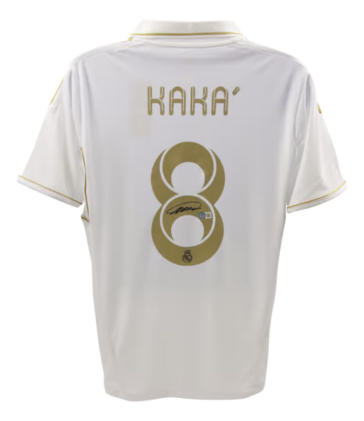 This is a Ricardo Kaka Signed Real Madrid FC Home Soccer Jersey #8 with Beckett Witness. THE ITEM IN THE PICTURE IS A STOCK IMAGE. YOU WILL RECEIVE AN IDENTICAL ITEM OF EQUAL QUALITY. ALL JERSEYS ARE SIZE LARGE. Every item of signed memorabilia we sell is official and of the highest quality. We pride ourselves on providing sports fans with the most exclusive signed memorabilia on the market. We are an industry leading signed memorabilia company who can guarantee 100% authenticity on every signature we sell. The item you receive will be identical to the one you are seeing in the stock pictures. This includes the item, the authentication company, signature color and signature placement. We take pride in ensuring the authenticity of all our items. With unwavering commitment, we guarantee that every signature is 100% authentic. Every item of signed memorabilia comes with a scannable barcode which takes you to the certificate of authenticity on the company's website. These industry leading authentication companies include Beckett Authentication Services, James Spencer Authentication Services and Professional Sports Authentication Services.