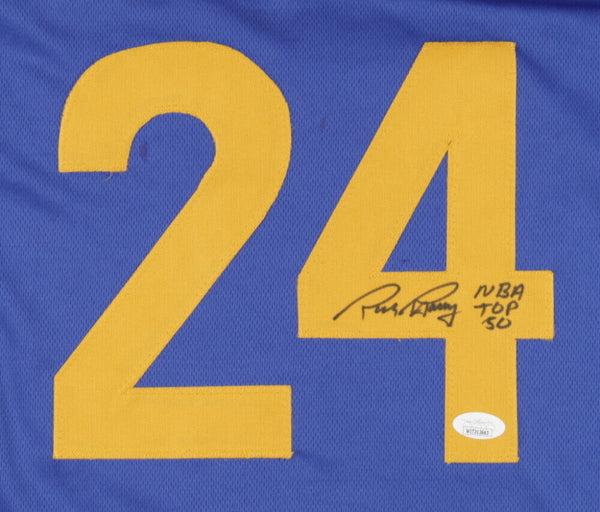 Rick Barry Signed Warriors Jersey Inscribed NBA Top 50 (JSA COA) 1975 NBA Champs
