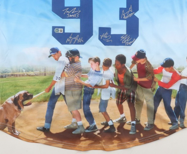 Custom on-field style cast photo jersey. Everything is sewn on, size XL. Has been hand-signed and inscribed by (7) including Tom Guiry (Scotty Smalls), Chauncey Leopardi (Michael 'Squints' Palledorous), Marty York (Alan "Yeah-Yeah" McClennan), Shane Obedzinski (Tommy 'Repeat' Timmons), Victor DiMattia (Timmy Timmons), Grant Gelt (Bertram Grover Weeks) and Brandon Adams (Kenny DeNunez).The autograph includes an official Beckett Authentication Services serially numbered hologram and QR Code card for authenticity purposes. The signing of this item was witnessed by Beckett.Authentication: Beckett Scannable Hologram with QR Code cardShop our ebay store / Friendly Confines Collectibles for thousands of different autographed jerseys
