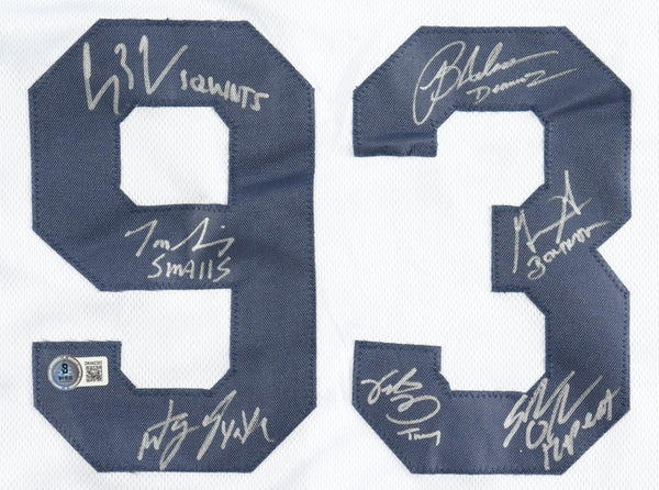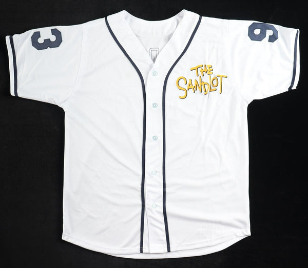 Custom on-field style jersey. Custom jersey. Everything is sewn on, size XL. Has been hand-signed and inscribed by (7) including Chauncey Leopardi (Michael 'Squints' Palledorous), Tom Guiry (Scotty Smalls), Grant Gelt (Bertram Grover Weeks), Marty York (Alan "Yeah-Yeah" McClennan), Shane Obedzinski (Tommy 'Repeat' Timmons), Victor DiMattia (Timmy Timmons), and Brandon Adams (Kenny DeNunez).The lot / autograph(s) includes an official Beckett Authentication Services serially-numbered scannable hologram and QR Code card for authenticity purposes. The signing of this item was witnessed by Beckett.Authentication: Beckett Scannable Hologram with QR Code card
