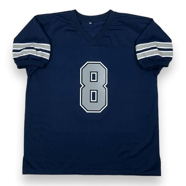 This signed item is brand new without tags or logos. This jersey is a size Large / XL. Pro tackle twill letters and numbers. This item will make a great gift or a great addition to any collection at an AFFORDABLE PRICE! ATHLETE: Troy Aikman ITEM: Custom Jersey AUTHENTICATION: This item comes with a Beckett serial #'ed hologram affixed to the item. To ensure authenticity, the hologram can be reviewed online. This process helps to ensure that the product purchased is authentic and eliminates any possibility of duplication or fraud. NOTE: All of our autographed jerseys are custom jerseys, unless otherwise noted. Our custom jerseys are NON-BRANDED, have NO logos, NO tags, NO patches, NO emblems. Pro tackle twill letters and numbers. The non-branded jerseys are made specifically for the player(s) to sign, for collectible purposes.