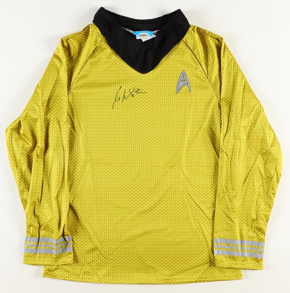 Custom Star Trek uniform. Everything sewn on, size XL. Jersey has been hand-signed by William Shatner (Captain James T. Kirk).The autograph includes an official James Spence Authentication (JSA) hologram and matching COA for authenticity purposes. Authentication: JSA COA