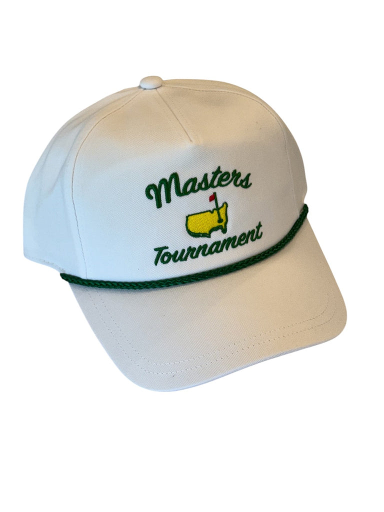 This is a 2025 Masters Augusta National Golf Club White Embroidered Rope Snapback Hat. This item is brand new/unused. Only available at Augusta during The Masters Tournament Week, this hat is not sold online or in stores, making it a prized addition for any golf fan or memorabilia collector!