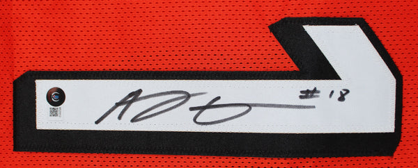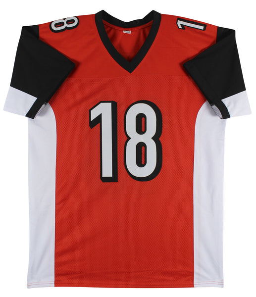 This Autographed Orange Pro Style Jersey has been Personally Signed by A.J. Green of the Cincinnati Bengals. This item is 100% Authentic to include a hologram by Beckett Authentication Services. This item may come with the new Beckett Authentication hologram that has a scannable QR code rather than the traditional COA. If you would like to have a COA, you are welcome to reach out to Beckett for a printed certification once you receive your item. This is a BAS Witnessed Protection Program item which means a Beckett Authentication Service representative was present when this item was being signed. We conducted an autograph signing with A.J. Green where multiples of the same item were signed. While the photographs are representative of this item, the size, placement and strength of the signature may vary. Each item is hand signed, therefore, each autograph is unique. This item can be verified through BAS Witnessed. This is a X-Large sized, non-branded, custom-stitched Jersey.