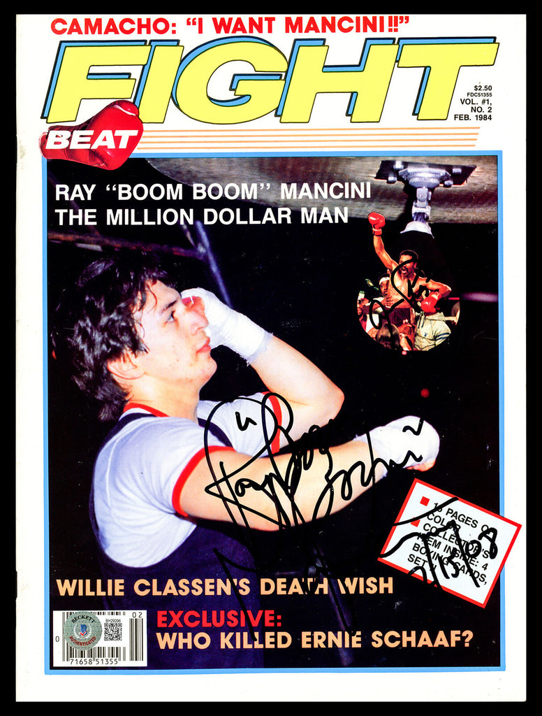 This is a Fight magazine that has been hand signed by Aaron Pryor & Ray "Boom Boom" Mancini. This item has been certified authentic by Beckett Authentication (BAS) and comes with their tamper-proof hologram.