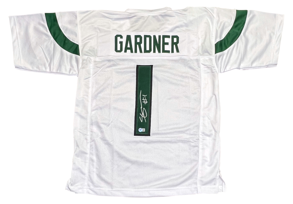 Ahmad "Sauce" Gardner, All-Pro cornerback for the New York Jets, has hand signed this white custom jersey at a private signing. Jersey is size XL and all letters/numbers are sewn-on. This item is authenticated by Beckett Authentication Services and was signed in the presence of one of their representatives. Their tamper-evident hologram featuring a QR code and serial number is on the item. The authenticity can be verified online by entering the serial number or scanning the QR code. Item pictured may not be the exact item you will receive. It will be similar quality, and we guarantee your satisfaction.