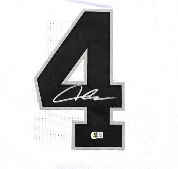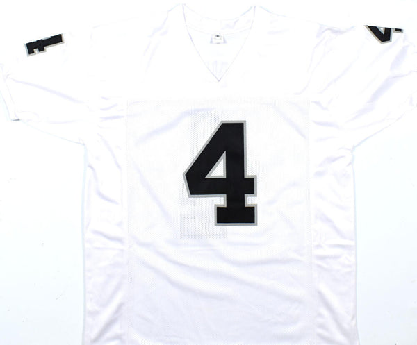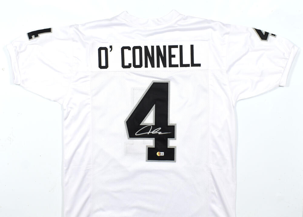 Aidan O'Connell Autographed White Pro Style Jersey - Beckett W Hologram *Silver THIS IS NOT AN NFL JERSEY. THIS HAS NO TAGS, NO LOGOS, NO EMBLEMS. This is a Aidan O'Connell hand autographed custom made (non name brand) authentic style jersey with stitched letters and numbers. This item has a Beckett Witnessed Authentication, which comes with a Beckett numbered hologram and a QR code for verification. You can view this item on the Beckett Authentication website, it shows when and where the item was signed. It was signed either at a public autograph appearance or a private signing. This is a stock photo of the item. Although you may not receive this exact item, the item you receive is virtually identical, brand new, and in great shape. Jersey size is XL.
