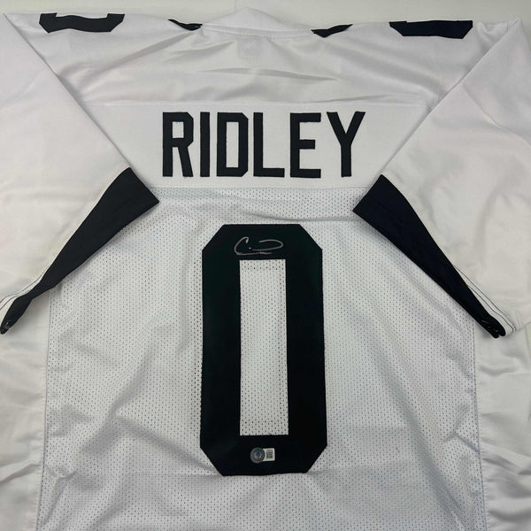 Autographed/Signed Calvin Ridley Jacksonville White Jersey Beckett BAS COA Jersey has no brand names or logos. This is a custom jersey and was not manufactured by or in any manner associated with any professional sports league or manufacturer. This custom jersey carries no professional sports league designation. The item is intended to be an autographed collectible. The custom jersey displays the name and number of the player. This item in no way is affiliated with or connected to any professional sports organization. Size is XL.