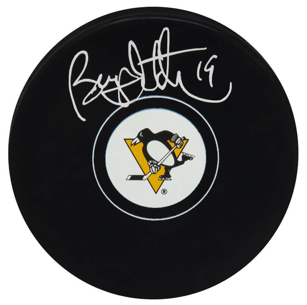 Bryan Trottier signed Pittsburgh Penguins logo hockey puck. Item comes with a Schwartz Sports Memorabilia tamper-proof numbered hologram and Certificate of Authenticity which can be verified online.