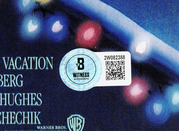 This is a 11x17 Christmas Vacation Movie Poster that has been hand signed by Chevy Chase. This item has been witnessed and certified authentic by Beckett Authentication (BAS) and comes with their tamper-proof witness sticker.