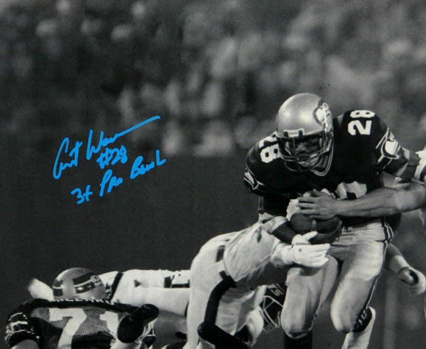 This is a hand autographed 16x20 Photo of Curt Warner of The Seattle Seahawks. This item has a James Spence Authentication, which comes with a JSA numbered sticker and a matching JSA COA. You can view this item on the SpenceLOA website. It was signed either at a public autograph appearance or a Private Signing. This is a stock photo of the item. Although you may not receive this exact item, the item you receive is virtually identical and brand new in great shape. This is a hand autographed 16x20 Photo of Curt Warner of The Seattle Seahawks. This item has a James Spence Authentication, which comes with a JSA numbered sticker and a matching JSA COA. You can view this item on the SpenceLOA website. It was signed either at a public autograph appearance or a Private Signing. This is a stock photo of the item. Although you may not receive this exact item, the item you receive is virtually identical and brand new in great shape.