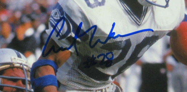 Curt Warner Seattle Seahawks Signed/Autographed 8x10 Photo Framed. The outer frame size is 13 inches x 16 inches. This photo is authenticated by JSA and includes their Tamper-proof Sticker and Certificate of Authenticity.