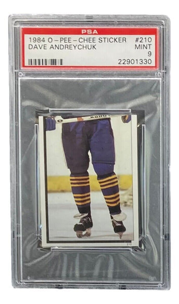 Featured is a Dave Andreychuk 1984 O-Pee-Chee Sticker #210 rookie card. This card has been encapsulated by PSA, receiving a Mint 9 condition grade. This card would make a great addition to any sports memorabilia collection! SPECIFICATIONS Autographed By: Team: Buffalo Sabres Sport: Hockey Authentication: