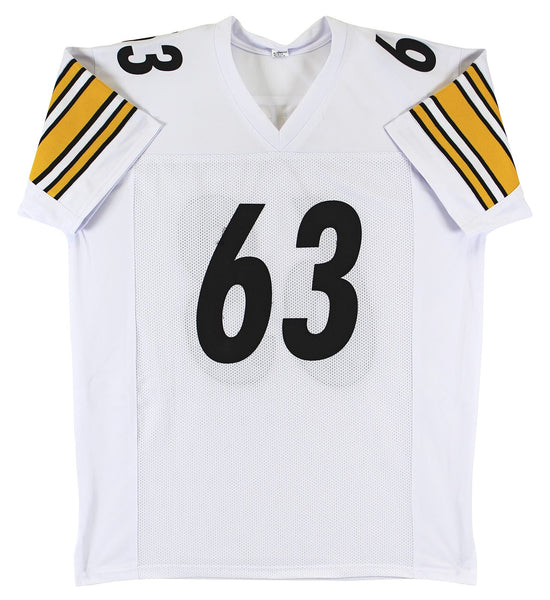 This Autographed White Pro Style Jersey with the inscription of "HOF 12" has been Personally Signed by Dermontti Dawson of the Pittsburgh Steelers. This item is 100% Authentic to include a hologram by Beckett Authentication Services. This item will come with the new Beckett Authentication hologram that has a scannable QR code rather than the traditional COA. If you would like to have a COA, you are welcome to reach out to Beckett for a printed certification once you receive your item. This is a BAS Witnessed Protection Program item which means a Beckett Authentication Service representative was present when this item was being signed. This is a stock item. We conducted an autograph signing with Dermontti Dawson and we have several of these available. The one you will receive will be of equal quality to the one pictured. This item can be verified through BAS Witnessed. This is a X-Large sized, non-branded, custom-stitched Jersey.