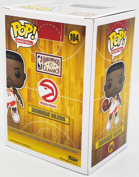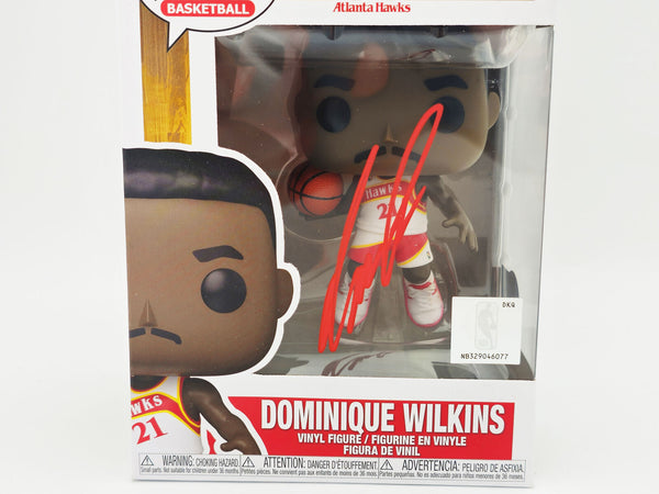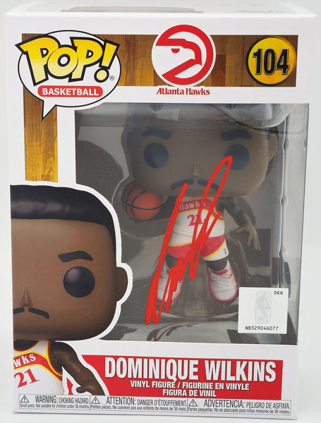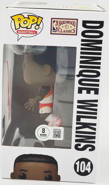 This is a Funko Pop #104 Vinyl Figurine that has been hand signed by Dominique Wilkins. This item has been witnessed and certified authentic by Beckett Authentication (BAS) and comes with their tamper-proof witness sticker.