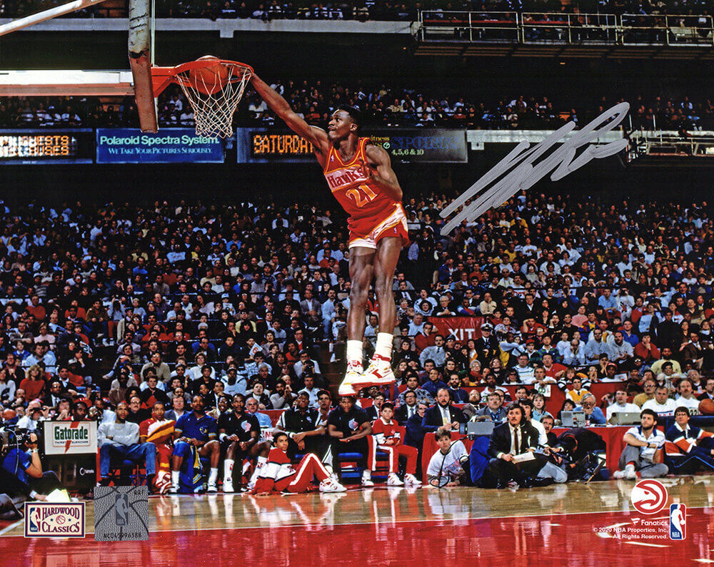 Dominique Wilkins Signed Hawks One Hand Dunk 8x10 Photo - (SCHWARTZ COA)