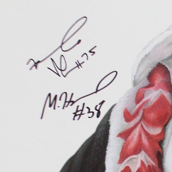 A Georgia Bulldogs Bailey Henderson's "Junkyard Dog: Back in Black" Unframed 16x20 Print hand signed by Sean Bailey, Kelin Johnson, Mikey Henderson, Marcus Howard, Fernando Valasco, & Brnadon Cotou. The item and signatures are in excellent condition. AUTHENTICATION: The item is accompanied by a Certificate of Authenticity - Serial Numbered and Databased Hologram.