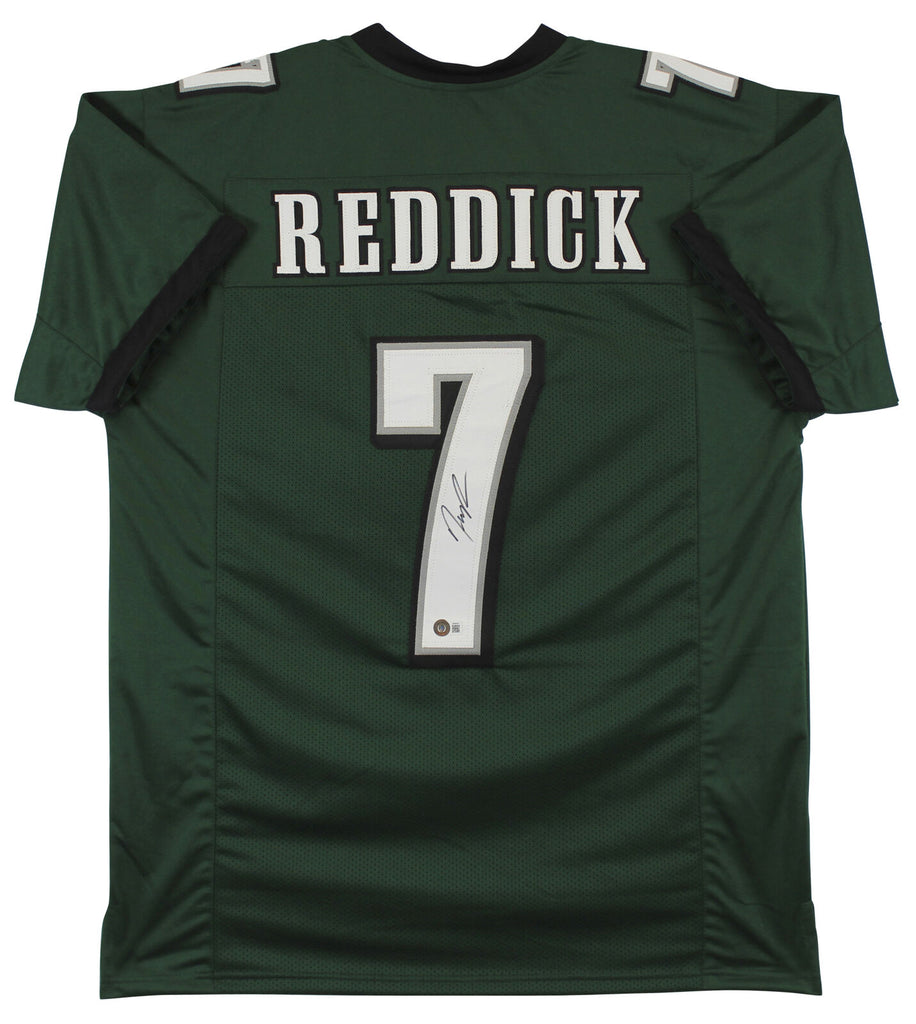 This Autographed Green Pro Style Jersey has been Personally Signed by Haason Reddick of the Philadelphia Eagles. This item is 100% Authentic to include a hologram by Beckett Authentication Services. This item will come with the new Beckett Authentication hologram that has a scannable QR code rather than the traditional COA. If you would like to have a COA, you are welcome to reach out to Beckett for a printed certification once you receive your item. This is a BAS Witnessed Protection Program item which means a Beckett Authentication Service representative was present when this item was being signed. We conducted an autograph signing with Haason Reddick where multiples of the same item were signed. While the photographs are representative of this item, the size, placement and strength of the signature may vary. Each item is hand signed, therefore, each autograph is unique. This item can be verified through BAS Witnessed. This is a X-Large sized, non-branded, custom-stitched Jersey.