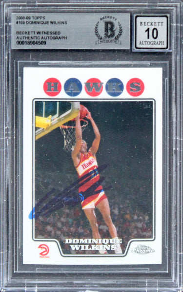 This Autographed Auto Graded Gem Mint 10! 2008 Topps #169 Card has been Personally Signed by Dominique Wilkins of the Atlanta Hawks. This item is 100% Authentic, it comes slabbed and authenticated by Beckett Authentication Services. The authenticity can be verified on Beckett Authentication Services website.