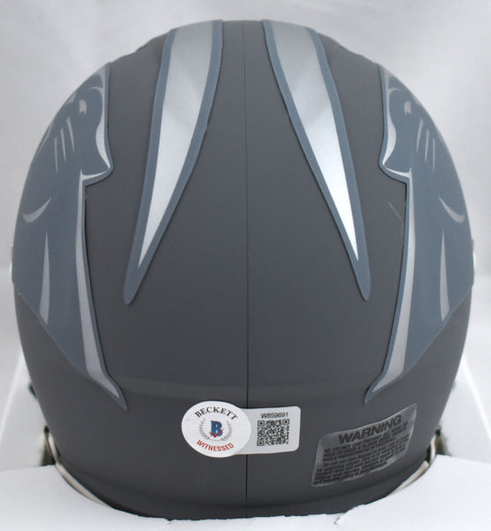 This is a hand autograph of Ja'Tavion Sanders of the Carolina Panthers on a Riddell Football Slate Speed Mini Helmet. This item has a Beckett Witnessed Authentication, which comes with a numbered hologram and a QR code for verification. You can view this item on the Beckett Authentication website and it shows when and where the item was signed. It was signed either at a public autograph appearance or a private signing. This is a stock photo of the item. Although you may not receive this exact item, the item you receive is virtually identical and brand new in great shape. This is a hand autograph of Ja'Tavion Sanders of the Carolina Panthers on a Riddell Football Slate Speed Mini Helmet. This item has a Beckett Witnessed Authentication, which comes with a numbered hologram and a QR code for verification. You can view this item on the Beckett Authentication website and it shows when and where the item was signed. It was signed either at a public autograph appearance or a private signing. This is a stock photo of the item. Although you may not receive this exact item, the item you receive is virtually identical and brand new in great shape.