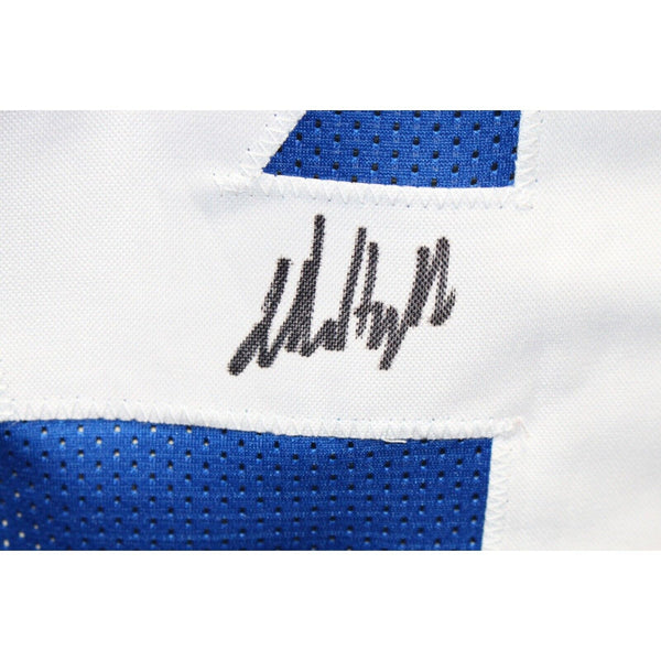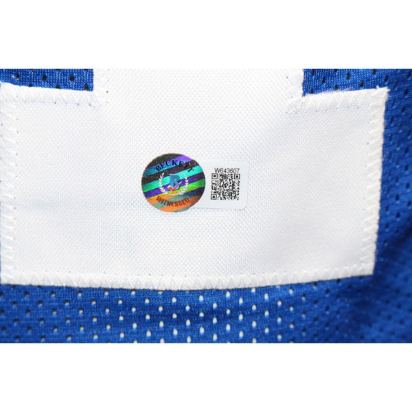 Jalin Hyatt Autographed/Signed Pro Style Blue Jersey Beckett 42794 The number in the listing title is just an inventory sku for our records and is not the authentication number. The item pictured is a stock photo unless otherwise noted. This is a Pro Style Blue Jersey that was personally autographed by Jalin Hyatt. Includes a certificate of authenticity from Beckett Authentication Services (BAS) and Denver Autographs.