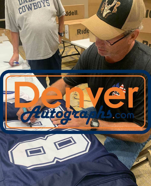 Jay Novacek Autographed/Signed Pro Style Blue XL Jersey BAS 31162 The number in the listing title is just an inventory sku for our records and is not the authentication number. This is a custom pro style blue XL jersey with sewn on name and numbers that was personally autographed by Jay Novacek. Includes a certificate of authenticity from Beckett Authentication Services (BAS) and Denver Autographs.