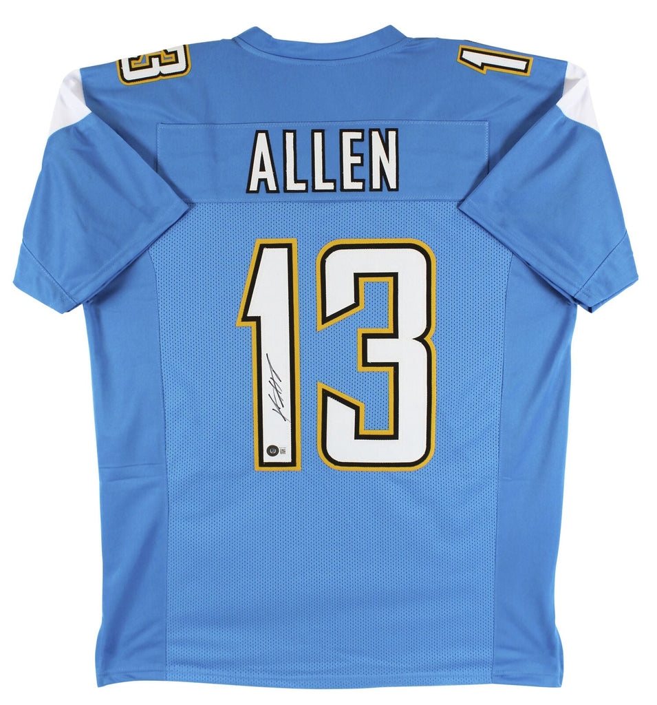 This Autographed Powder Blue Jersey has been Personally Signed by Keenan Allen of the Los Angeles Chargers. This item is 100% Authentic to include a Certificate of Authenticity (COA) / hologram by JSA Witness or Beckett Witness. This is a Beckett Witnessed or JSA Witnessed Protection Program item which means a Beckett or JSA representative was present when this item was being signed. This item will come with the new Beckett Authentication hologram that has a scannable QR code rather than the traditional COA. If you would like to have a COA, you are welcome to reach out to Beckett for a printed certification once you receive your item. This is a stock item in which we have several available. You may receive a signature on either the #1 or #3. The one you will receive will be of equal quality to the one pictured. This item can be verified through JSA Witness. This is a X-Large sized, non-branded, custom-stitched Jersey.