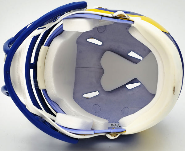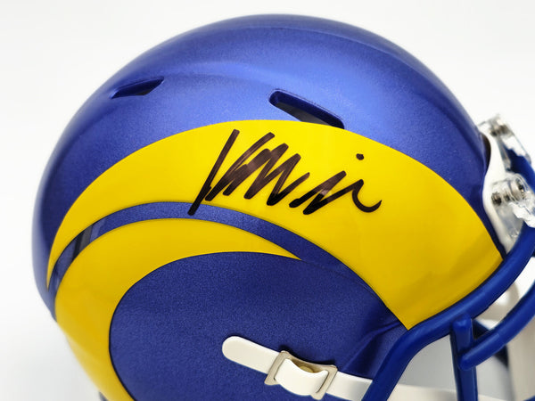 This is a Los Angeles Rams Blue Speed Mini Helmet that has been hand signed by Kyren Williams. This item has been witnessed and certified authentic by Beckett Authentication (BAS) and comes with their tamper-proof witness sticker.