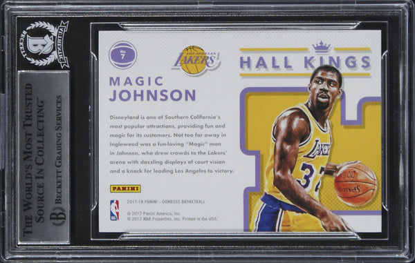 This Autographed 2017 Donruss Hall Kings #7 Card has been Personally Signed by Magic Johnson of the Los Angeles Lakers. This item is 100% Authentic, it comes slabbed and authenticated by Beckett Authentication Services. The authenticity can be verified on Beckett Authentication Services website.