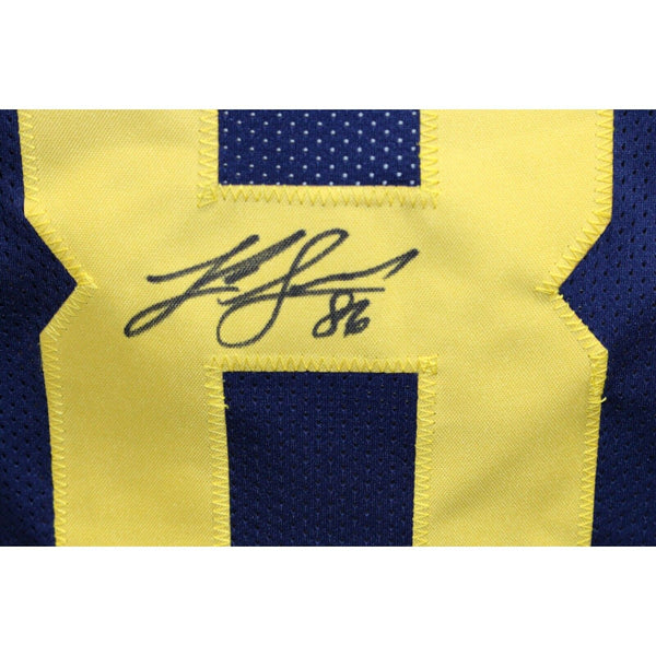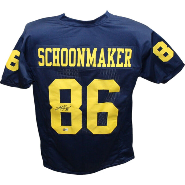 Luke Schoonmaker Autographed College Style Blue Jersey Beckett 42732 The number in the listing title is just an inventory sku for our records and is not the authentication number. The item pictured is a stock photo unless otherwise noted. This is a College Style Blue Jersey that was personally autographed by Luke Schoonamker. Includes a certificate of authenticity from Beckett Authentication Services (BAS) and Denver Autographs.