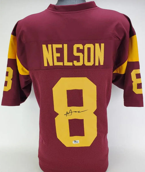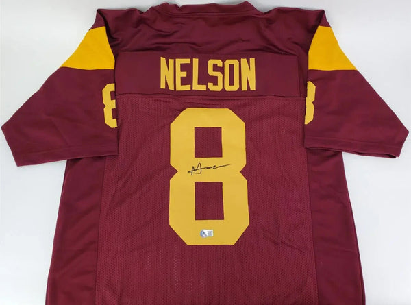 This autographed jersey has been personally hand-signed by Malachi Nelson of the USC Trojans.This autograph is certified by Beckett Authentication Services (BAS) Witness Certification. That means that a Beckett representative was present when this item was signed. It comes with the numbered authentication hologram with a QR code that verifies the authentication on the Beckett website.Custom on-field style jerseys are a more affordable option for autograph seekers. These jerseys do not have any brand name or tags and are made in the Philippines. They feature stitched on names and numbers and are made to look very similar to the on-field jerseys that the players wear. These custom jerseys are very commonly used in the memorabilia industry.