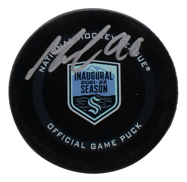 Featured is a Marcus Johansson signed Seattle NHL Inaugural Season hockey puck. This hockey puck was hand signed by Marcus Johansson and authenticated by Fanatics authentication services. Included with the hockey puck is a Fanatics hologram and certificate of authentication. This item would make a great addition to any sports memorabilia collection! SPECIFICATIONS Autographed By: Marcus Johansson Team: Seattle Kraken Sport: Hockey-NHL Authentication: Fanatics Authentic