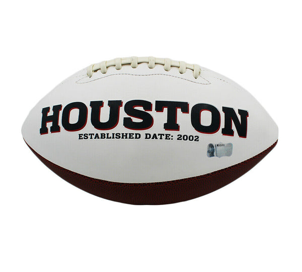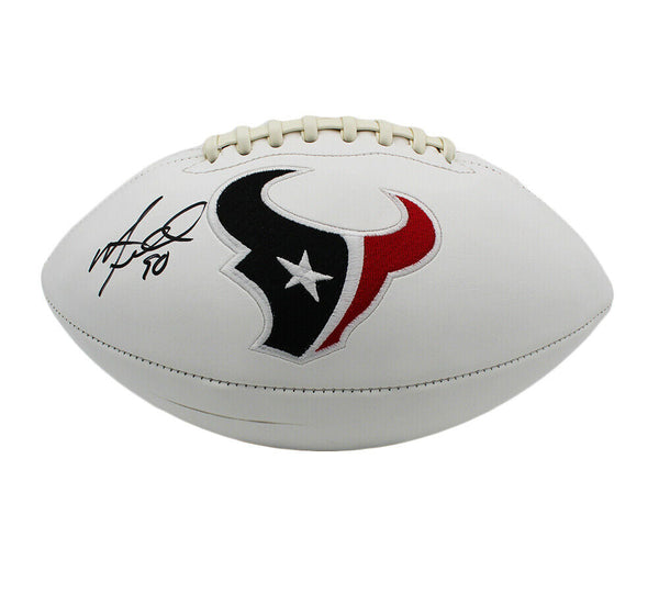 A Houston Texans Embroidered White NFL Football hand signed by Mario William. The item and signature are in excellent condition. Mario was selected in round 1 of the the 2006 NFL Draft by the Houston Texans. He is a 4x Pro Bowler and played for North Carolina State in college. AUTHENTICATION: The item is accompanied by a Certificate of Authenticity - Serial Numbered and Databased Hologram - Picture of Mario from the signing.
