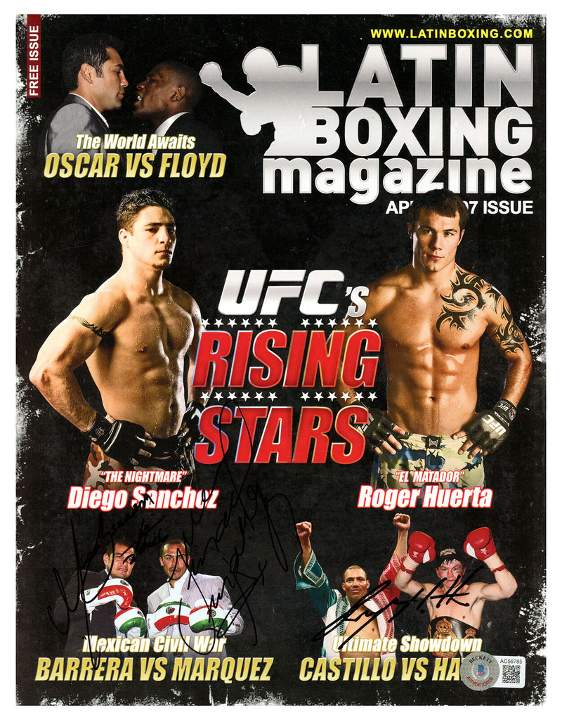 This is a Latin Boxing magazine that has been hand signed by Rafael Marquez, Marco Antonio Barrera & Ricky Hatton. This item has been certified authentic by Beckett Authentication (BAS) and comes with their Tamper-Proof Hologram and matching full-page certificate of authenticity.