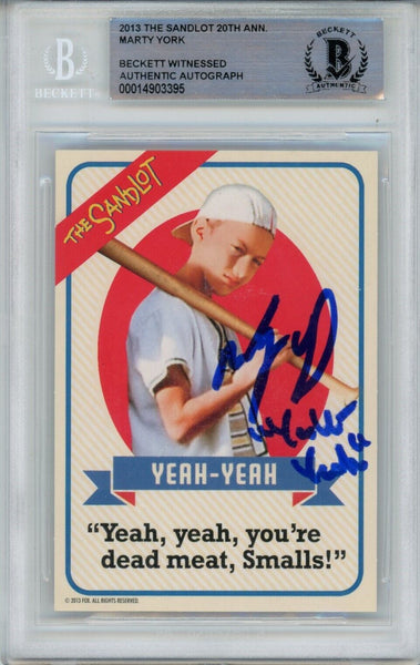 Marty York Autographed/Signed The Sandlot 20 Anniv. Insert Beckett 40699 The number in the listing title is just an inventory sku for our records and is not the authentication number. This is a 2013 20th Anniversary Sandlot Movie Insert trading card that was personally autographed by Marty York. This was professionally authenticated and slabbed by Beckett Authentication Services (BAS), also includes a certificate of authenticity from Denver Autographs.