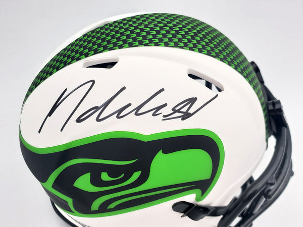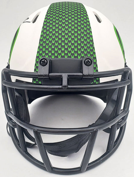 This is a Seattle Seahawks Lunar Eclipse White Speed Mini Helmet that has been hand signed by Michael Dickson. The Eclipse helmets are very delicate and often have some marks or scratches on them. This item was signed in the presence of a Mill Creek Sports representative and comes with their serial numbered hologram and matching certificate of authenticity.