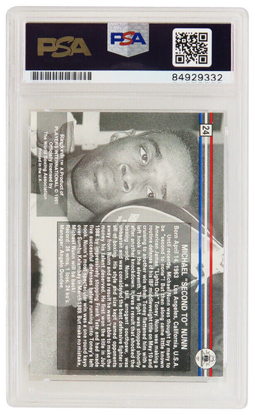 Michael Nunn signed 1991 Ringlords boxing trading card #24. The card has been authenticated and encapsulated by PSA/DNA and the number can be verified online. The image of the item is a stock photo, as we may have multiples of the item in stock. The Slabbed Card you will receive will be of the card described. (Same grade, Same authentication) You may or may not receive the exact PSA serial number on the slab label shown in image.
