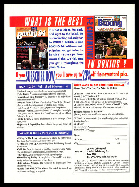 This is a World Boxing magazine that has been hand signed by Oscar De La Hoya & Christy Martin. This item has been certified authentic by Beckett Authentication (BAS) and comes with their Tamper-proof QR Code Hologram that can be verified on the Beckett-authentication.com.