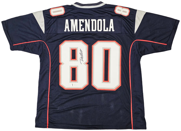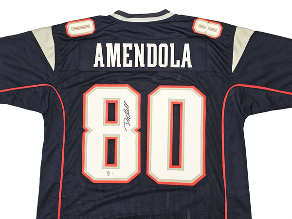 This is a Blue Jersey that has been hand signed by Danny Amendola. This is a custom jersey with no name brand. The approximate size is XL. It has nice sewn in name and numbers. This item has been witnessed and certified authentic by Beckett Authentication (BAS) and comes with their tamper-proof witness sticker.